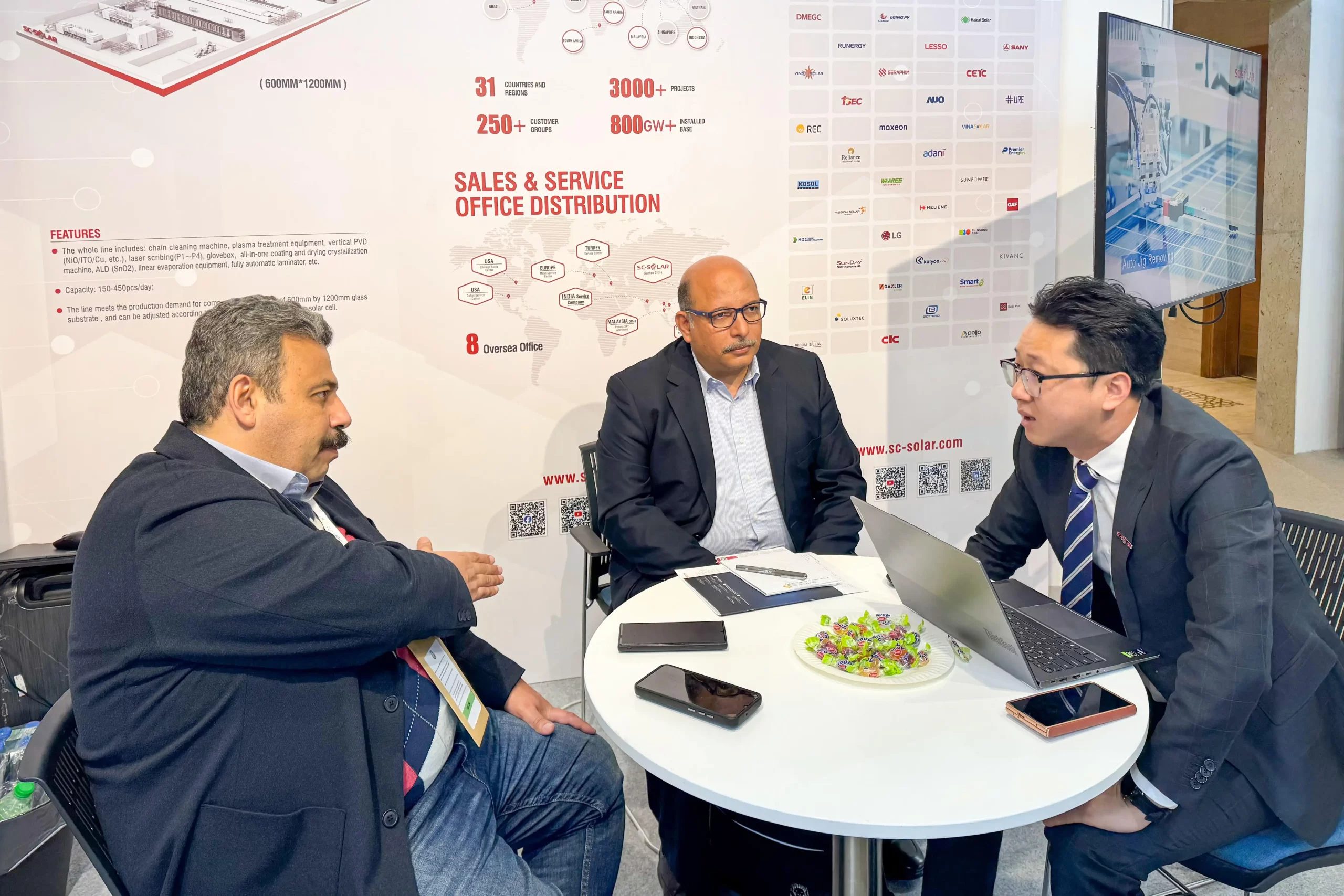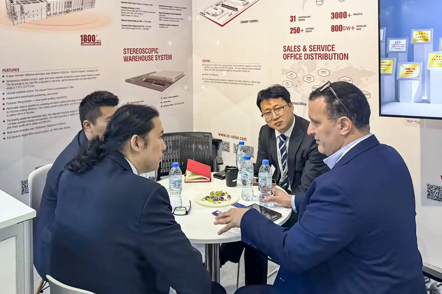 针对中东市场日益增长的需求,HJC黄金城集团光伏展示了高效、智能化的光伏组件生产线解决方案,不仅实现了生产效率与质量的全面提升,还兼具高适配性与能源节约的优势。这些创新成果在展会期间吸引了众多客户与合作伙伴的高度关注。