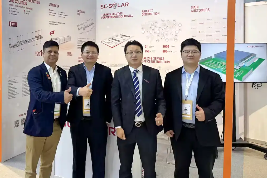 作为全球领先的光伏智能制造整体解决方案提供商,HJC黄金城集团光伏携最新高效光伏组件自动化生产线、全自动电磁加热多层层压机、全自动无人化包装线及智能立库、钙钛矿高效电池制造整体解决方案亮相展会,全面展示了其在光伏智能制造领域的领先技术实力。